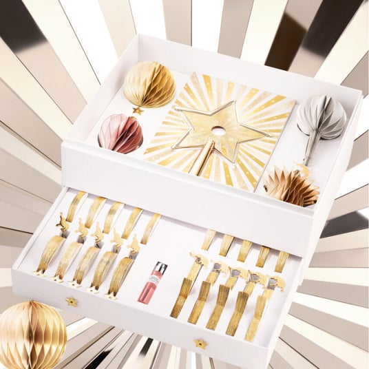 繊細に煌めくペーパー オーナメントのフォルムは、クリスチャン・ディオールの友人であったアーティスト、ルネ・グリュオーがかつてデザインした、メゾン ディオールの伝統的なオーナメントにインスピレーションを受けています。輝き溢れるゴールド、シルバー、ピンクを纏い、プリーツから浮かび上がる繊細なハーリキン チェックの模様は、クリスチャン・ディオールが愛したサーカスの世界を彷彿とさせます。オーナメントは、付属のフレグランスを直接スプレーして、ラ コレクシオン プリヴェの美しい香りをお楽しみください。甘酸っぱくリッチなフレグランス「ルージュ トラファルガー」は、ベルベットのようなパチョリとムスクをベースに、ラズベリーとカシスの葉の鮮やかなデュオが予想外の驚きを与える、フルーティー フローラルの香りです。そしてハイライトとして、アーティストのピエトロ・ルッフォがデザインしたひときわ輝く特別なゴールド スターをクリスマスツリーのトップに飾り、壮麗でエレガントな美しいクリスマスツリーをお楽しみください。