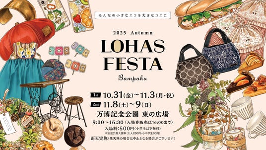 10/31~11/3・11/8~11/9開催「ロハスフェスタ万博2025秋」。様々な手作り作品やアンティーク、美味しいグルメ、楽しいワークショップを楽しみながらSDGsに触れる屋外イベト