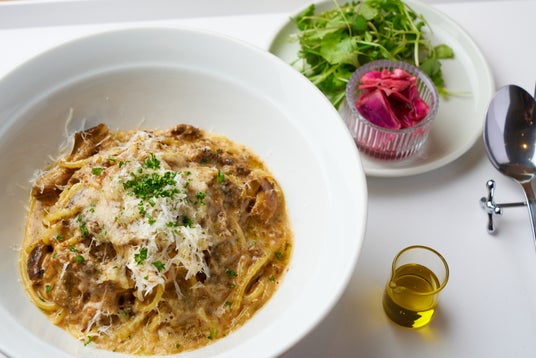 ポルチーニ香る濃厚クリームミートソースとサラダのセット