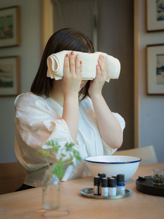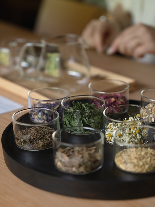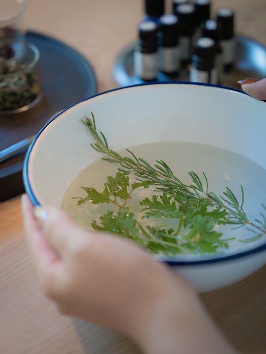 五感を働かせながら"からだが喜ぶ"オリジナルのハーブティーをブレンド。アロマオイルを使った簡単なセルフケアも取り入れ、植物の香りに包まれながら心身をやさしく整えていきます。