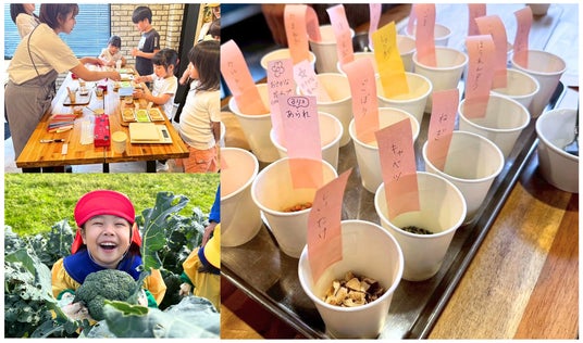 自社農園で種・苗植えから収穫、おいしい味わいの開発までの工程を、地域の生産者や就労支援と連携しこどもたちが体験。