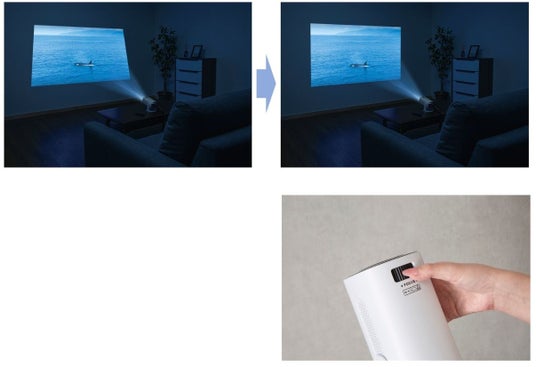 3.自動台形補正(垂直方向)とマニュアルフォーカスリングで簡単設定垂直方向の画面のゆがみを自動で補正してくれるので複雑な操作は不要。