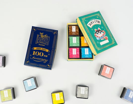 ・いろもよう わらべ/紙箱セット "新デザイン登場!" スタンプアート用スタンプパッド「いろもよう わらべ」から、お好みの色を6点選んで購入いただくと、オリジナルボックスを無料でお付けする「いろもよう わらべ紙箱セット」を数量限定でご用意しました。オリジナルボックスは、張子人形"犬張子(いぬはりこ)"とシヤチハタの創業100周年をモチーフにした新デザインの2種類をご用意しています。