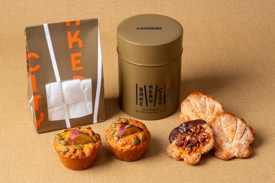 大人気のマシュマロは、秋の定番となったサンクスギビング限定パッケージで!THE CITY BAKERYの代名詞「プレッツェルクロワッサン」をモチーフにした焼き菓子「プレッツェルパイ」や、季節の食材を取り入れたパンにペイストリーが、店頭を鮮やかに彩ります。各地のTHE CITY BAKERYで、個性あふれる品々をお楽しみください。