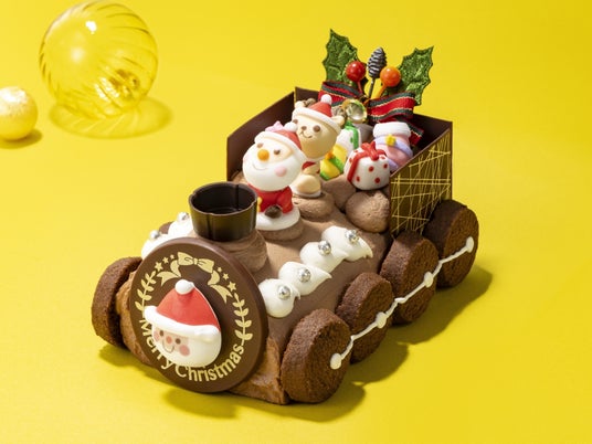 サンタがプレゼントを乗せた汽車で街へやってくる!そんな心躍るワンシーンを切り取った、新作ケーキが登場。濃厚なチョコレートクリームをたっぷりと使ったロールケーキと、チョコレートやチョコクッキーで機関車をデザインしました。機関車が好きなお子さまにぴったりの、夢あふれる一品です。