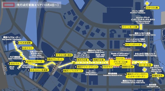 実施エリア:横浜駅東口、はまみらいウォーク、みなとみらい歩道橋、グランモール公園、帆船日本丸(船体整備期間は除く)など各エリア