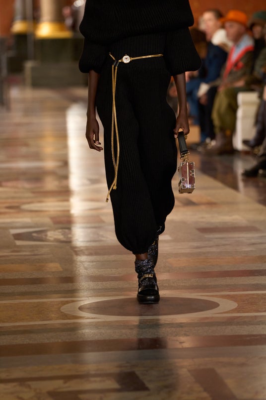 2026春夏ウィメンズ・ファッションショーのルックのひとつにおいて、1988年に誕生した歴史あるタイムピース「LV I」がチェーンベルトに装着され、ショー限定で披露されました。