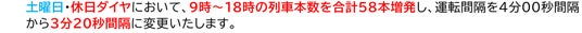 東京地下鉄株式会社(本社:東京都台東区、代表取締役社長:小坂 彰洋、以下「東京メトロ」)では、銀座線沿線のイベントや観光スポットへより多くのお客様にご利用いただけるよう2025年11月1日(土)から銀座線の土休日ダイヤにおいて、日中時間帯の運転本数を増発し、お客様の利便性向上を図ります。
