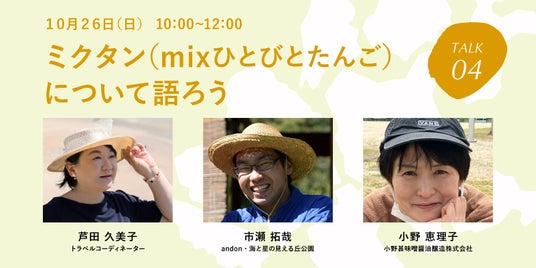 ゲスト:芦田久美子(トラベルコーディネーター)、市瀬拓哉(andon・海と星の見える丘公園)、小野恵理子(小野甚味噌醤油醸造株式会社)