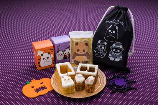 内容:ハロウィン限定デザインの巾着に、おばけパンダバウム(パンプキン味)、かいぶつパンダバウム(塩キャラメル味)、パンダサブレ(1枚)が入ったセットです!
