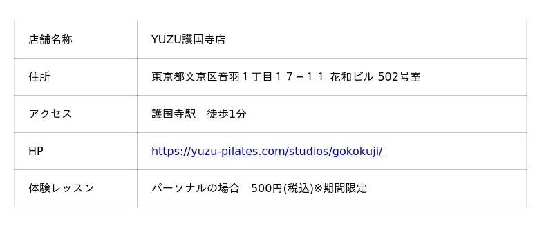 護国寺駅に、ココロとカラダの健康美をサポートするピラティスレッスンを提供しているYUZUが通算59号店目を11月にOPEN!