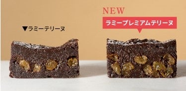 「ラミー」にも使用しているみずみずしい特製ラムレーズンを2倍(※)に増量し、テリーヌをよりみずみずしく、よりラムレーズンを楽しめる品質に仕上げました。ラムレーズンが増えたことでさらに洋酒の味わいも深まり、大人がときめく味わいとなっております。
