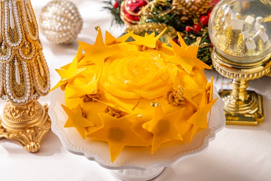 しっとりとしたジェノワーズにピンクグレープフルーツと苺のコンポートをサンドしたショートケーキ「女王陛下の宝石箱」はたっぷりの苺をトッピングし、サイドを包む上品なレース風ホワイトチョコレートが一際目を引きます。ジンジャーシロップに漬け込んだドライ無花果と胡桃を混ぜ込んで焼き上げる「クリスマスの朝のクグロフ」、アーモンド香るタルトにアッサムティー風味のクリームと林檎のコンポートを配し、リッチなクレーム・ドゥーブルをまるで天使の羽のように絞った「マジェスティック・ホワイト」、オーナメントを思わせるホールケーキ「ロイヤル・オーナメント」は爽やかな酸味のラズベリームースの中に、ラズベリージュレとココナッツムースを忍ばせました。その他にもパン・ド・ジェーヌの上にマロンブリュレ入りコーヒー風味のホワイトチョコレートムースを乗せた「プリンスのスクエアオーナメント」、オールスパイスを効かせた生地にレーズン、チェリー、オレンジピールなどを合わせて焼き上げるパウンドケーキ「王様のイブのお夜食」、パイナップルやオレンジのコンポート入りミルクチョコレートのムースに華やかな星型のチョコレートをトッピングした「ロイヤルツリートップの星」などフルーツやナッツ、スパイスをふんだんに用いたクリスマススイーツをご用意しています。