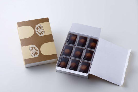 れんこんの根からとれる蓮粉と和三盆糖蜜を練り上げ、とろりとした口あたりとやさしい甘みを楽しめる、紫野和久傳の代表菓子。季節ごとに餡を加えた限定品も展開し、秋冬は「栗餡」を販売いたします。