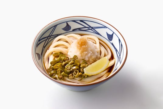 店内では日本と同様の製麺機や茹で釜を導入し、日本の丸亀製麺従業員からトレーニングを受けた現地スタッフが、粉から生地をつくり、打ち立て、茹でたてのうどんを提供しています。日本で定番人気の「かけうどん」をはじめ、ローカライズメニューとして、日本では季節限定商品として販売している「青唐辛子ぶっかけうどん」