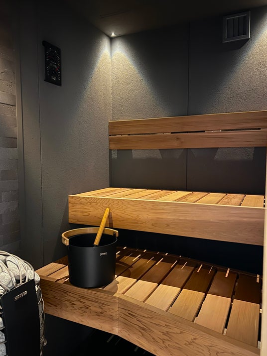 木材は香りに特徴のある高級木材レッドシダーを採用。天井、ヒーター直上にファイバー照明を配置し、HARVIA製のSPIRITを導入。自宅でも本格的なロウリュを体験することが可能。ベンチと天井の高さを最適に調整、施工日数は5日間と短い日数で施工を完了しました。