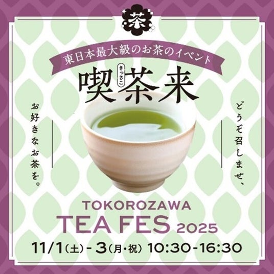 株式会社KADOKAWA(本社:東京都千代田区、取締役 代表執行役社長 CEO:夏野剛 以下 KADOKAWA)は、埼玉県所沢市の文化複合施設・ところざわサクラタウンにて、2025年11月1日(土)・2日(日)・3日(月祝)の3日間、お茶の生産者や専門店が集うお茶の祭典『喫茶来(きっさこ)TOKOROZAWA TEA FES 2025』を開催します。