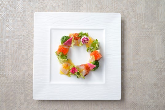 オマール海老、ノルウェーサーモン、帆立のマリネ リース仕立て