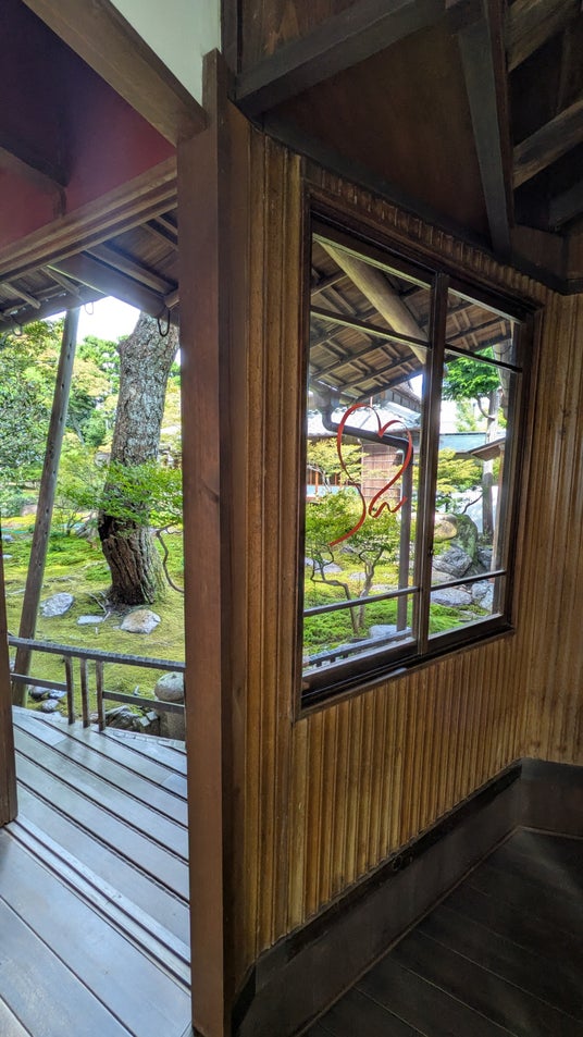 ・旧林氏住宅内の窓ガラスに、ハート型のフィルムを設置し、フィルム越しに