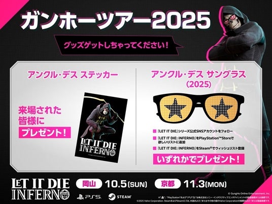 会場では、『LET IT DIE』シリーズの水先案内人である「アンクル・デス」のステッカーやオリジナルサングラスをゲットするチャンス。