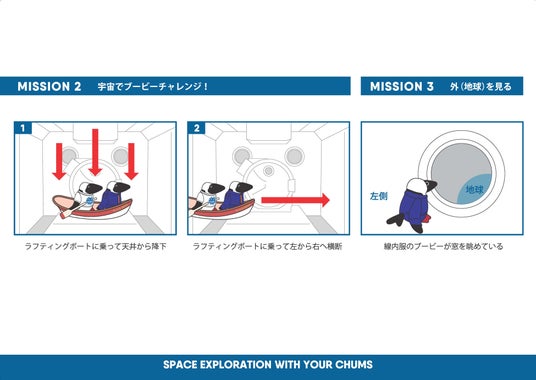 ブランドのマスコットキャラクター、ブービーバードのぬいぐるみ2体が、CHUMS(チャムス)が展開する「SPACE」シリーズのJump SuitsとSpace Booby T-Shirtを着用し、国際宇宙ステーション(ISS)内の「きぼう」日本実験棟にて動画撮影を行います。