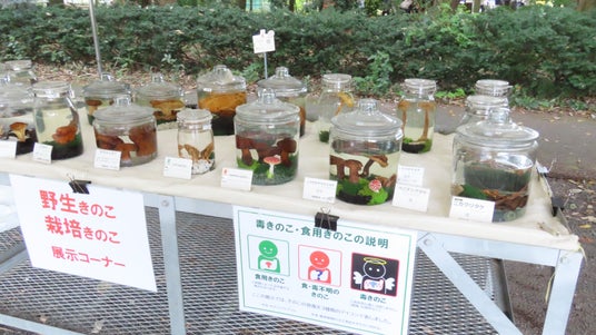 つくば市を中心に日本各地で採取された野生の生きのこを展示します。また、代表的な栽培きのこについて栽培状況がわかる形で展示します。香りや手触りを体験できるコーナーです。