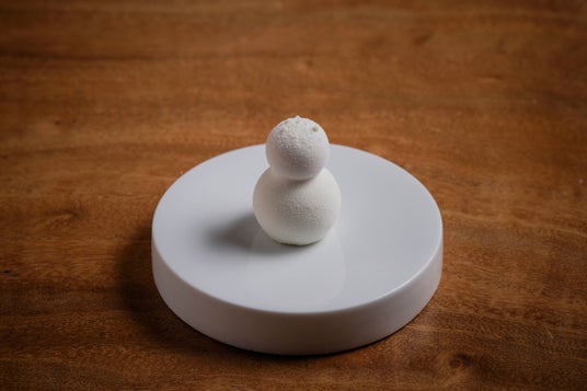 雪だるまの下部は、キャラメリゼしたリンゴを包み込むように青リンゴのムースで繊細に仕上げられており、上部はシナモンとスターアニスの香り豊かなクリームを重ねております。雪が舞い降りる情景を、上質なホワイトチョコレートのパウダーで幻想的に表現し、冬ならではの極上のデザートへと仕上げております。
