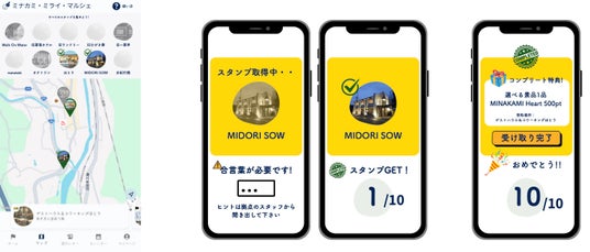10の拠点を周遊する、水上温泉デジタルスタンプラリー企画も開催されます。 各拠点にて合言葉を入力することでスタンプを押すことができます。10のスタンプを集めた方には、電子地域通貨MINAKAMI HEART Payポイント500pt分をプレゼント!合言葉を聞き出すコミュニケーションを楽しみながら、お得にマルシェをお楽しみください。