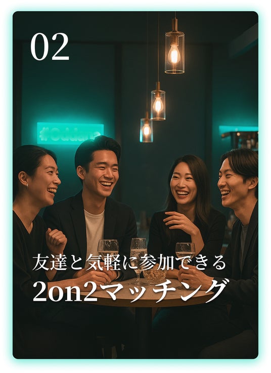 "選ばれた会員同士"が、最短1分でマッチング。カジュアルに友達と2対2でも参加できる『令和のハイステータス合コン』。