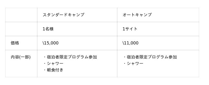 ※以下内容は予告なく変更となる場合があります。【Camp】場所:キャンプサイト