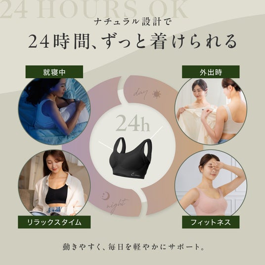 24時間、昼も夜もずっと快適に着けられます。