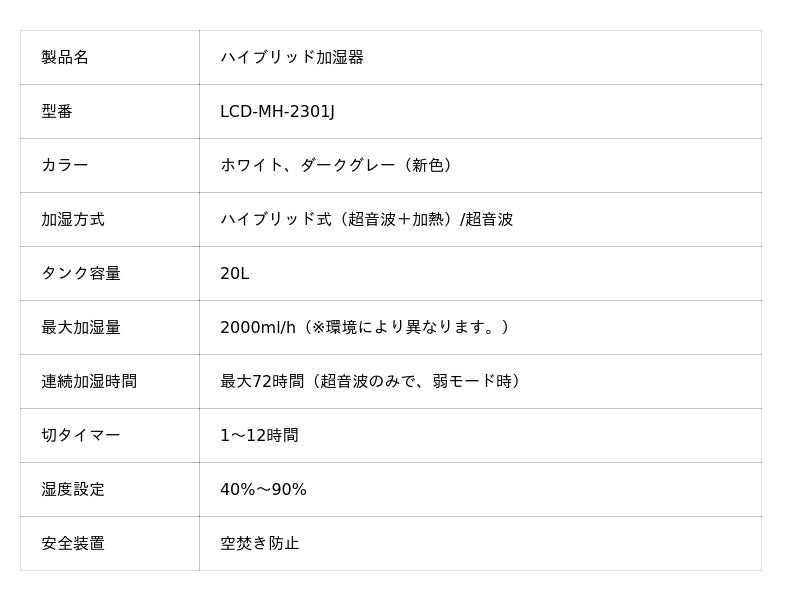 LACIDOLL 20L大容量ハイブリッド加湿器(LCD-MH-2301J)は、加熱式と超音波式を組み合わせたハイブリッド方式を採用!