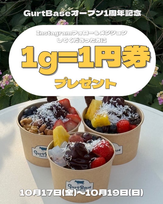 フローズンヨーグルト量り売り専門店「GurtBase(グルトベース)」が1周年イベントを開催