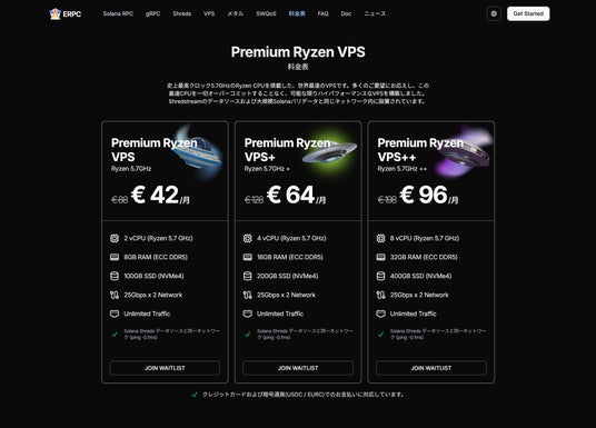 コストパフォーマンスに優れ、多くのユーザーに支持されている Bundle プラン では、Solana RPC・Geyser gRPC・Shredstream を一括で利用できます。