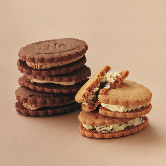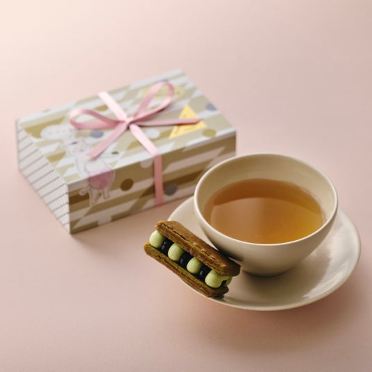ブランドのシグネチャーであるレーズンサンドと、京都<一保堂茶舖>のほうじ茶が出会いました。ほうじ茶ミルクジャムに、ほうじ茶サブレのブラウンな香ばしさと、レーズンのジューシーなコントラストが眩しい仕上がりです。