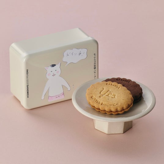 概要:食べ終わったら何入れようかなの猫村缶(猫村さんは商店街のクーポンを入れるそうです)に2種のキャラメルバターサンドをご用意しました。「レーズン キャラメルバターサンド」は発酵バターのサブレに、濃厚バニラキャラメルと果実味溢れるレーズンが溶け合い、「ショコラアプリコットキャラメルバターサンド」はクーヴェルチュールチョコレートを使用し、紅茶ミルクキャラメルとアプリコットがうっとり香りの層を作り出します。