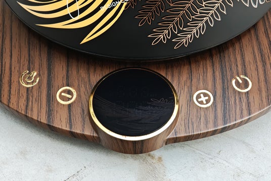 液晶左右に配置された+/-ボタンのタッチで温度調整、ベース部左端のボタンで保温機能のオンオフが可能