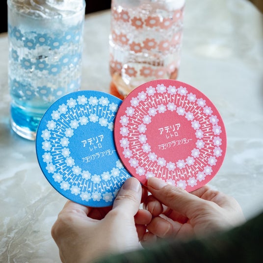 グラスと同じ色のコースター付き