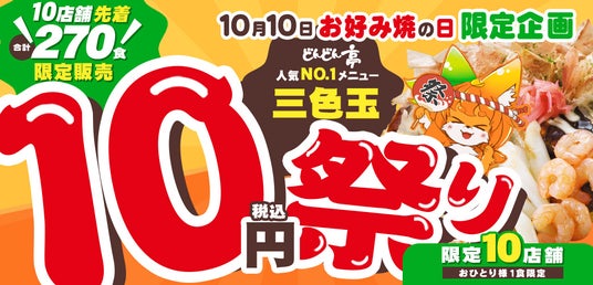 「10月10日はお好み焼の日」を記念してどんどん亭では、いつもご利用いただいている皆様へ日頃の感謝を込めて特別なキャンペーンを実施いたします。