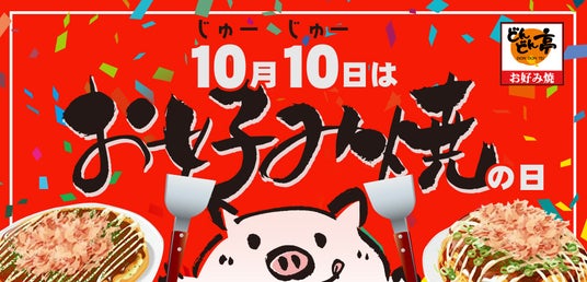 10月10日「お好み焼の日」をどんどん盛り上げてまいりますので、ご家族やご友人と一緒にどんどん亭でお食事やお得なキャンペーンをぜひお楽しみください。
