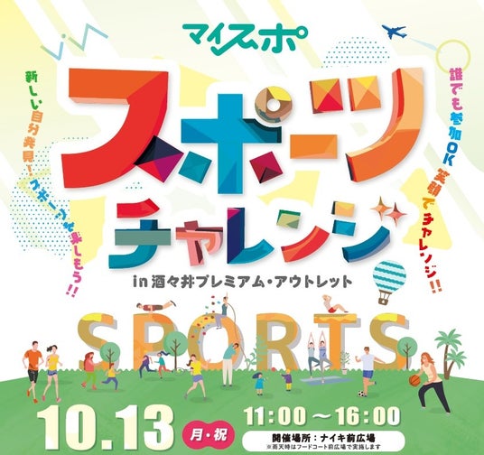 酒々井プレミアム・アウトレット(所在地:千葉県印旛郡酒々井町 運営:三菱地所・サイモン株式会社)は、2025年10月13日(月・祝)「スポーツの日」に、子どもから大人まで、一人ひとりの運動への関心・意欲を向上し、地域の健康づくりの促進を目指すイベント「スポーツチャレンジ in 酒々井プレミアム・アウトレット」を開催します。