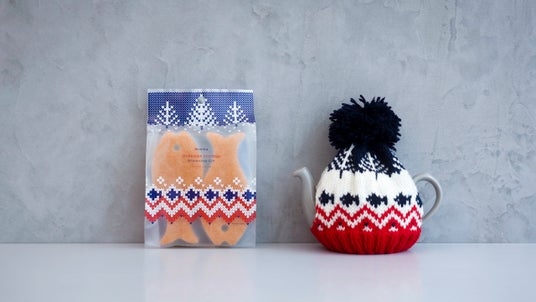この度の「冬のおくりもの」は、冷え込む日々の中でも、暖かみを感じられる柔らかなブラウンカラーの不織布を採用しました。パッケージは、北欧伝統の編み込み模様であるノルディック調にデザイン。おさかなやもみの木をあしらったこの季節ならではのデザインは、贈り物に最適です。