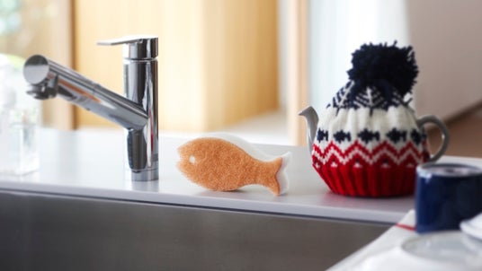 暖かみを感じられる、柔らかなブラウンのキッチンスポンジ