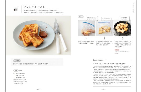 すべての工程に写真を入れ、子どものお手伝いにおすすめの箇所はマークを付記しました。さらにお菓子作りをもっと楽しめる「子どもの発見をうながす声かけ例」も紹介しています。忙しいママ、お菓子作り初心者のママもおいしく楽しく作れるレシピです!