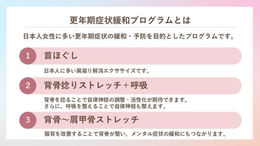 ■肩こりなどの筋肉・関節症状にアプローチ「更年期不調改善プログラム」公開!