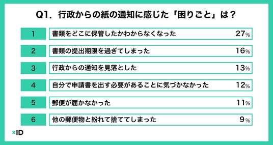 通知の紛失や見落としなど、行政からの紙の通知に起因するトラブルを約半数が経験。特に「保管場所が分からなくなった」が最多で、管理の煩雑さが浮き彫りになりました。