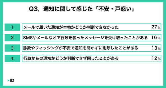 「本物か判断できなかった」「詐欺が不安」など、通知の真偽に関する不安を抱えた人は多数派。 フィッシング被害への懸念が利用体験を左右しています。