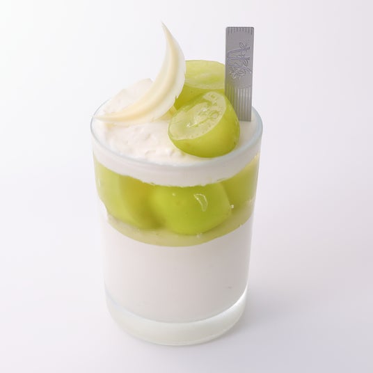 安芸農園さんのシャインマスカットにホワイトチョコレートムースとマスカットのスパークリング、道産クリームチーズを合わせたプレミアムヴェリーヌ。