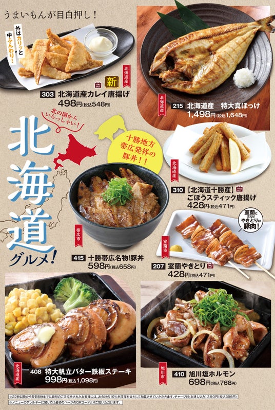 北海道・東北グルメを中心に、海鮮から肉料理、ちょっとしたおつまみまで様々なお料理をご用意しております。