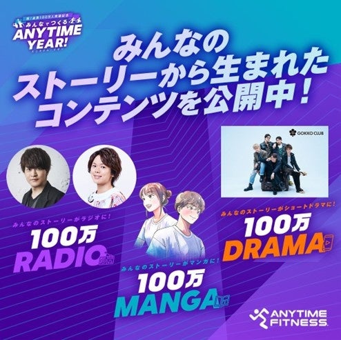 エニタイムフィットネス会員100万人突破記念キャンペーン第1弾『エニタイムからはじまる物語を、シェアしよう。ー 100万人ストーリーズ・プロジェクト』コンテンツ公開中